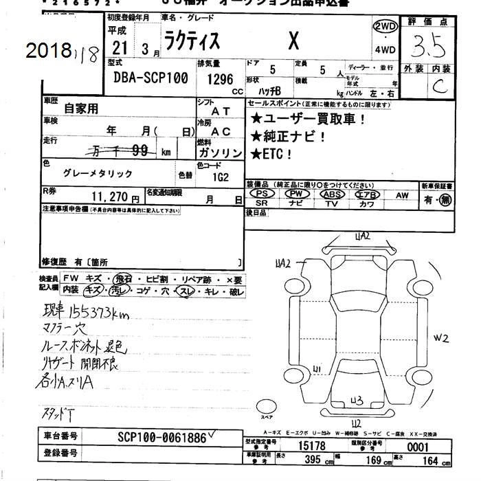 | G HID SELECTION | CBA-NCP105 | 1NZ-FE | Full-time 4WD | 4AT | 1496cc | 105ps(77kW)/6000rpm | AИ-92 | 1 732 000 | |