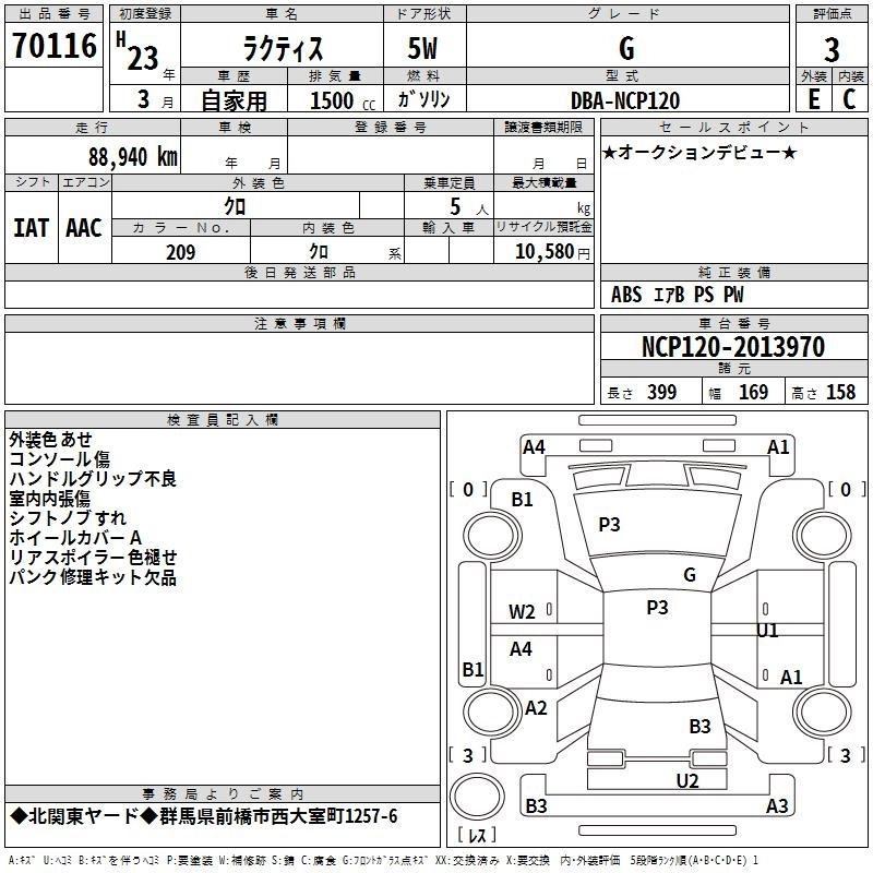 X DBA-NCP120 1NZ-FE FF CVT 1496cc 109ps(80kW)/6000rpm AИ-92 1 540 000