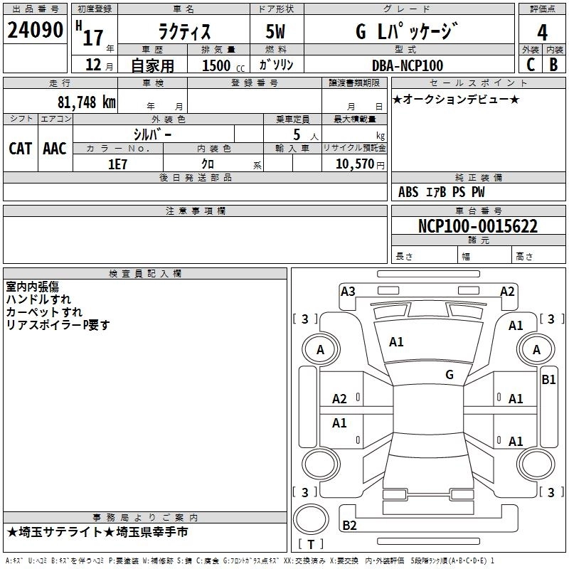 | G S PACKAGE | DBA-NCP100 | 1NZ-FE | FF | CVT | 1496cc | 110ps(81kW)/6000rpm | AИ-92 | 1 722 000 | |