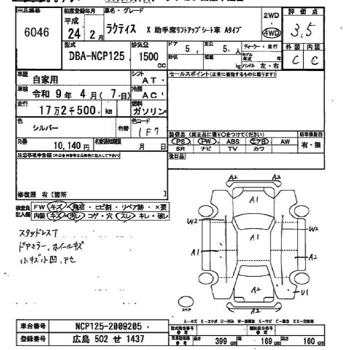 | X | DBA-NCP125 | 1NZ-FE | Full-time 4WD | CVT | 1496cc | 103ps(76kW)/6000rpm | AИ-92 | 1 708 000 | |