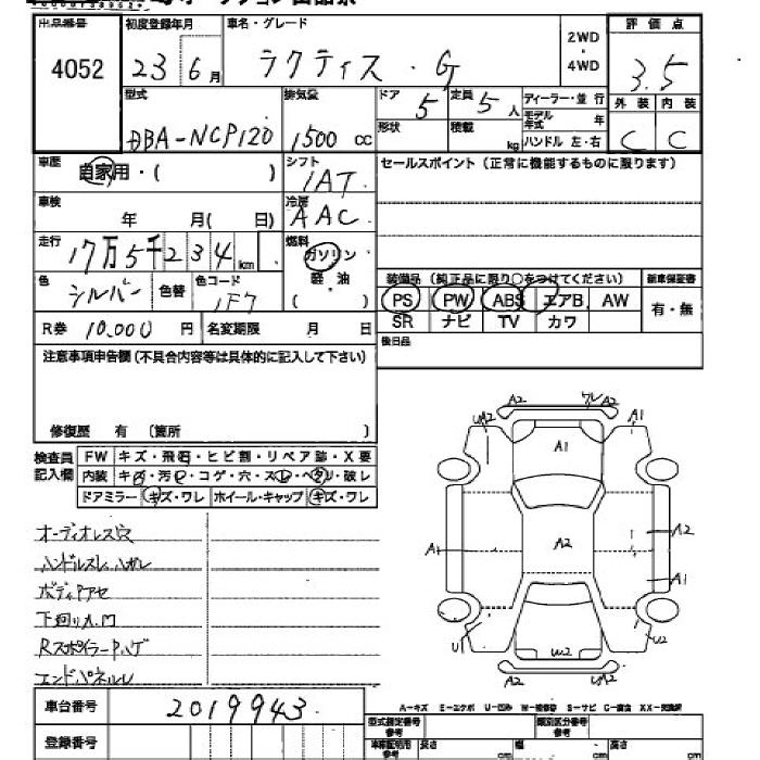 G DBA-NCP125 1NZ-FE Full-time 4WD CVT 1496cc 103ps(76kW)/6000rpm AИ-92 1 863 000