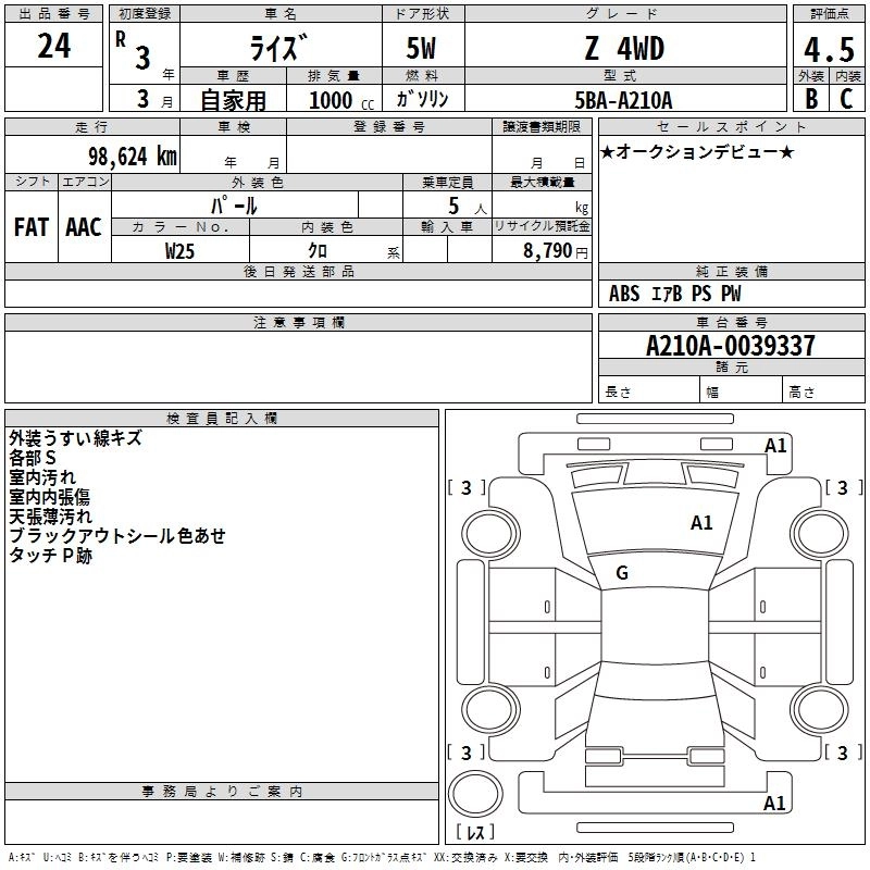 Год выпуска2021 Пробег 99 000 км КузовA210A КомплектацияZ 4WD