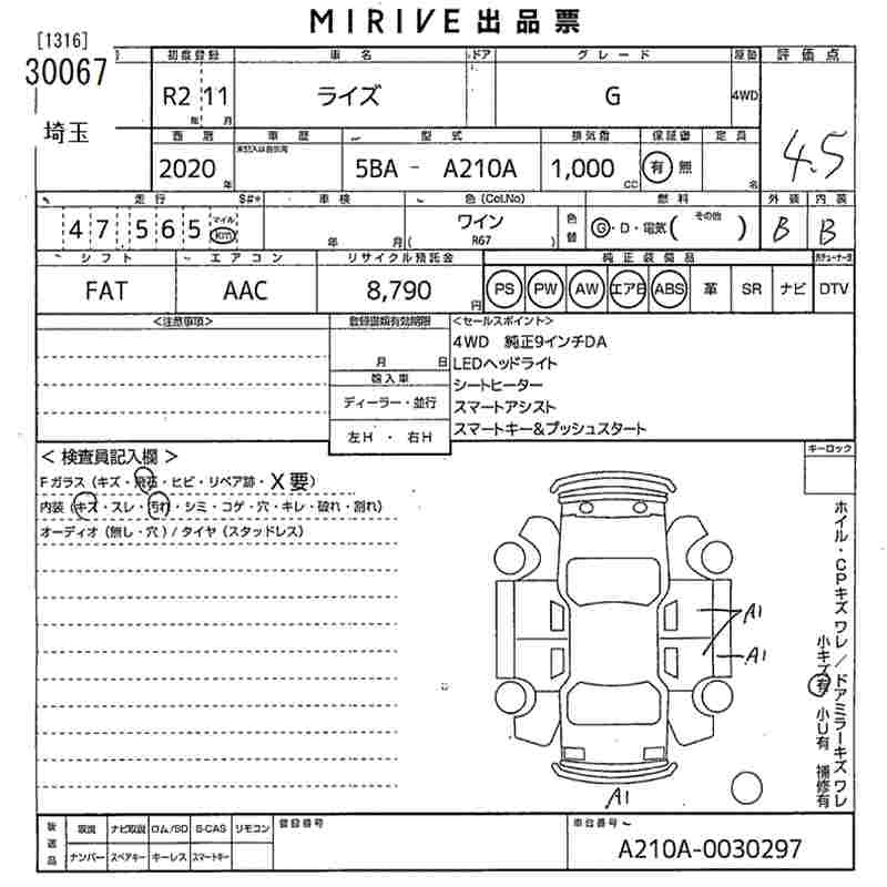 Статус removed Лот 30067 Аукцион MIRIVE Saitama Дата аукциона 04.02.2026