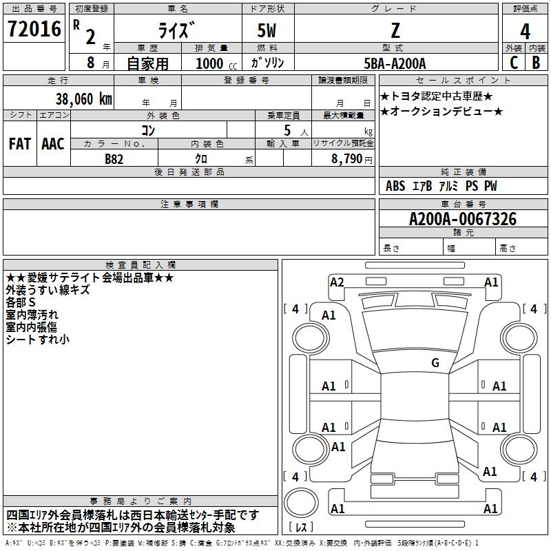 TOYOTA RAIZE 2020 г., лот № 72016
