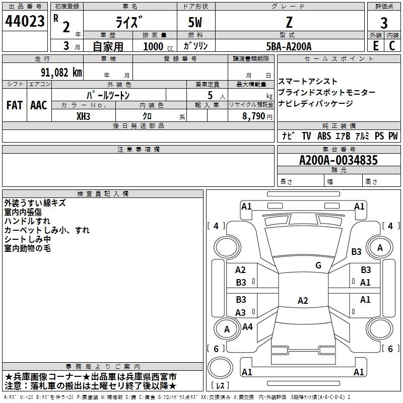 TOYOTA RAIZE 2020 г., лот № 44023