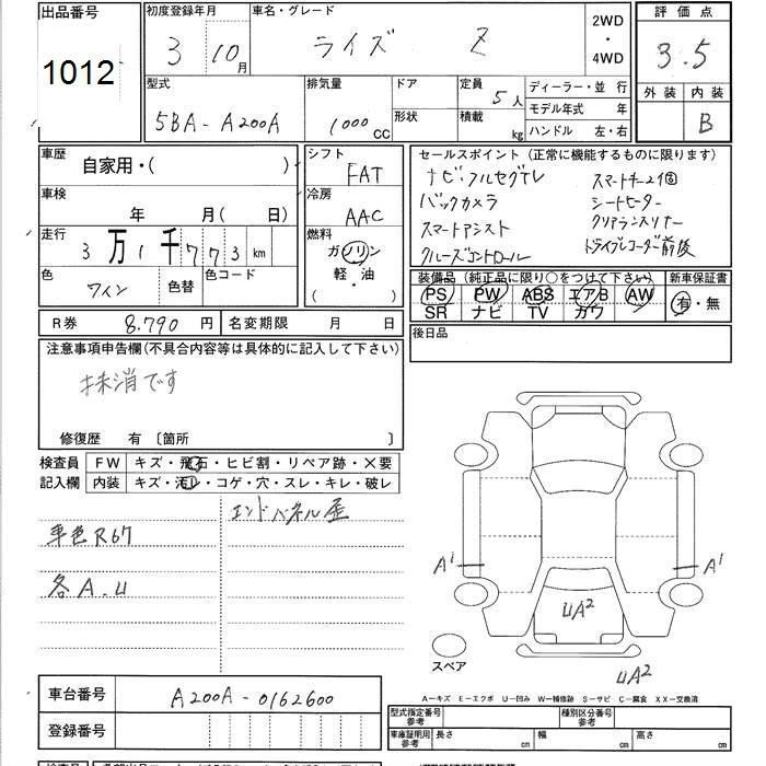 TOYOTA RAIZE 2021 г., лот № 1012