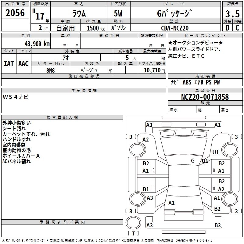 TOYOTA RAUM 2005 г., лот № 2056