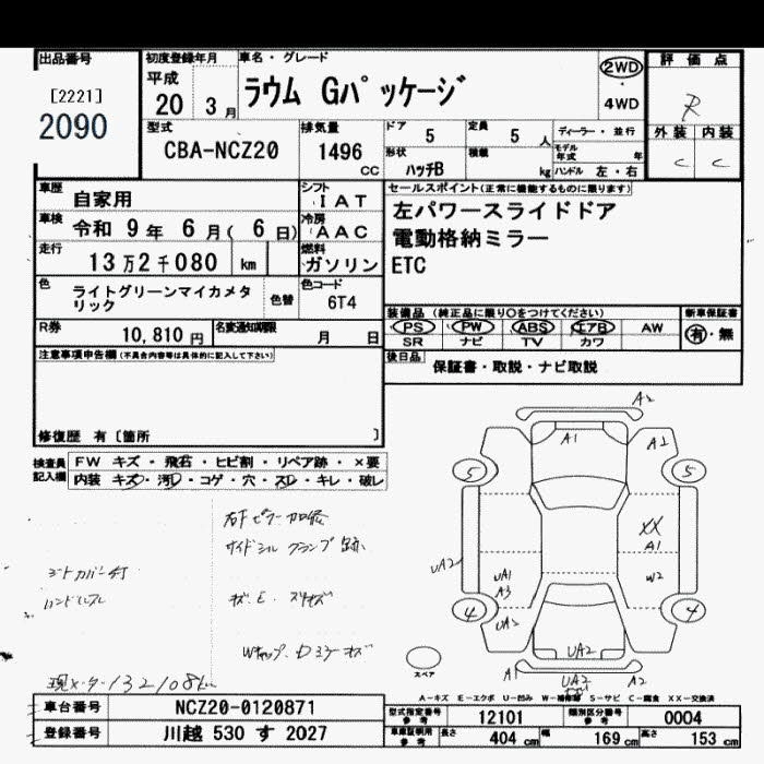 TOYOTA RAUM 2008 г., лот № 2090