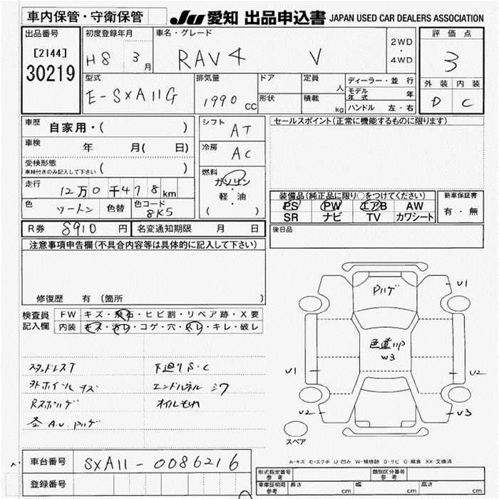 TOYOTA RAV4 1996 г., лот № 30219