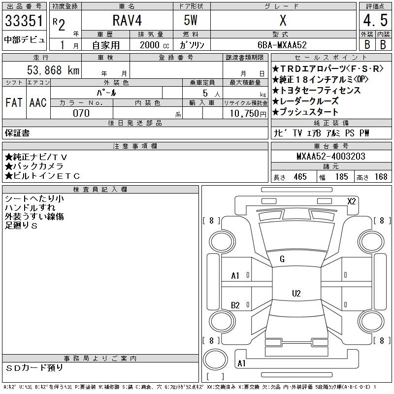 | X | 6BA-MXAA54 | M20A-FKS | Full-time 4WD | CVT | 1986cc | 171ps(126kW)/6600rpm | AИ-92 | 2 974 000 | |