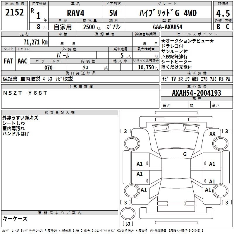 | HYBRID G | 6AA-AXAH54 | A25A-FXS | Full-time 4WD | CVT | 2487cc | 178ps(131kW)/5700rpm | AИ-92 | 3 817 800 | |