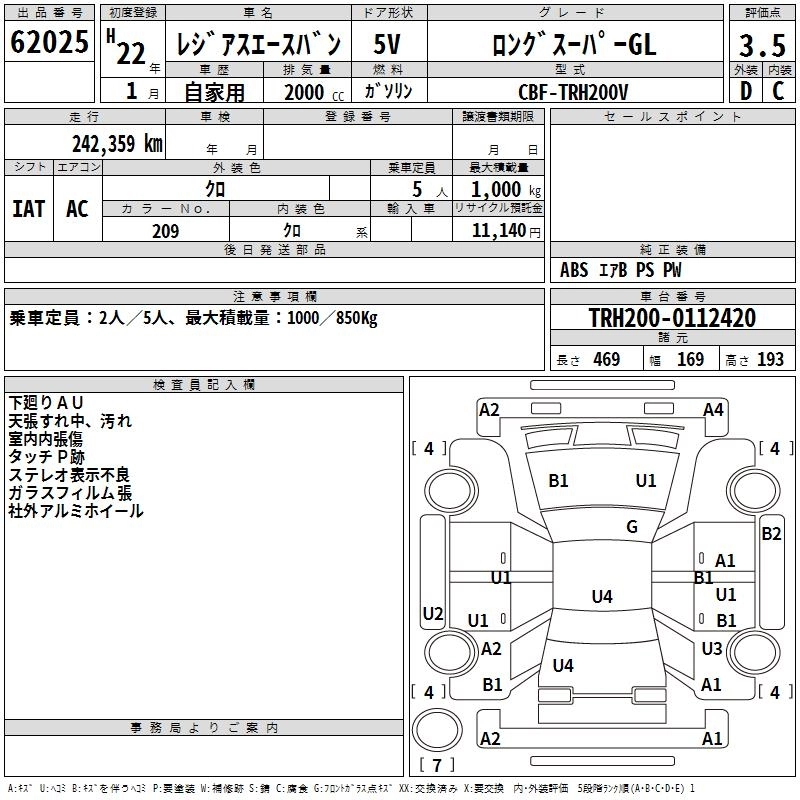Год выпуска2010 Пробег 242 000 км КузовTRH200V Комплектация LONG SUPER GL