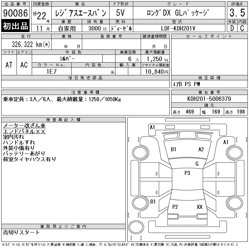 Год выпуска2010 Пробег 326 000 км КузовKDH201V Комплектация LONG DX GL PACKAGE