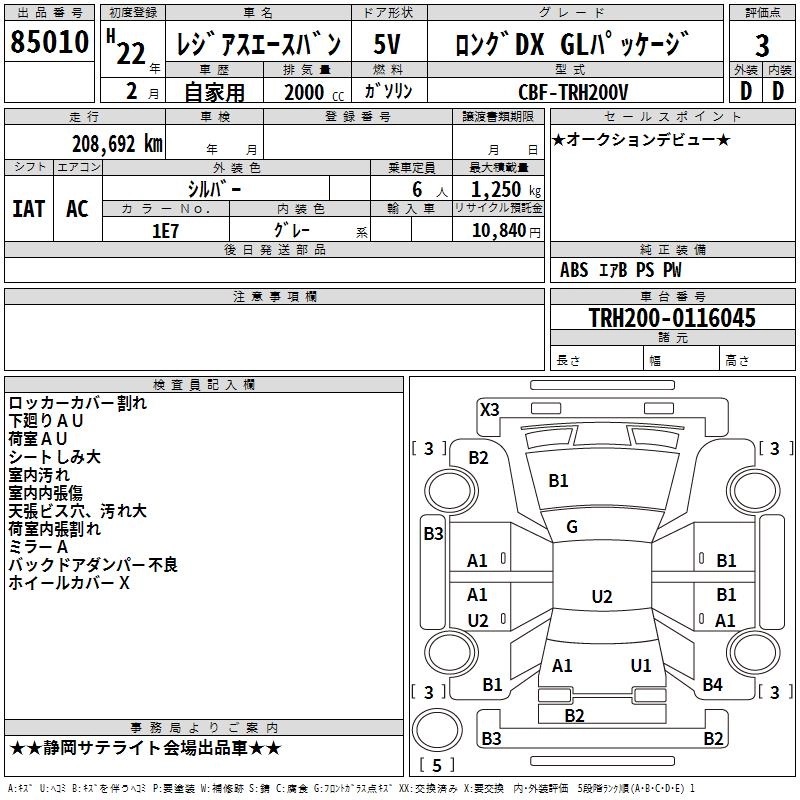 TOYOTA REGIUS VAN 2010 г., лот № 85010