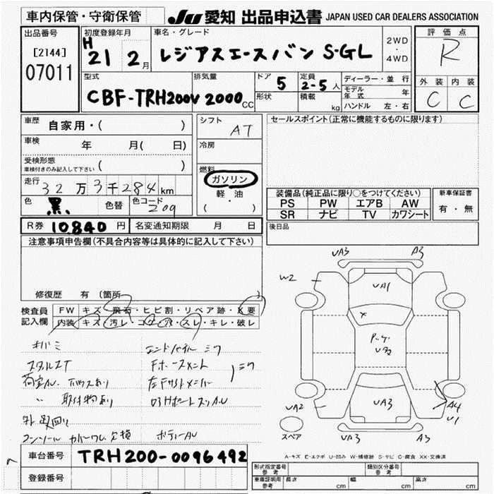 TOYOTA REGIUS VAN 2009 г., лот № 7011