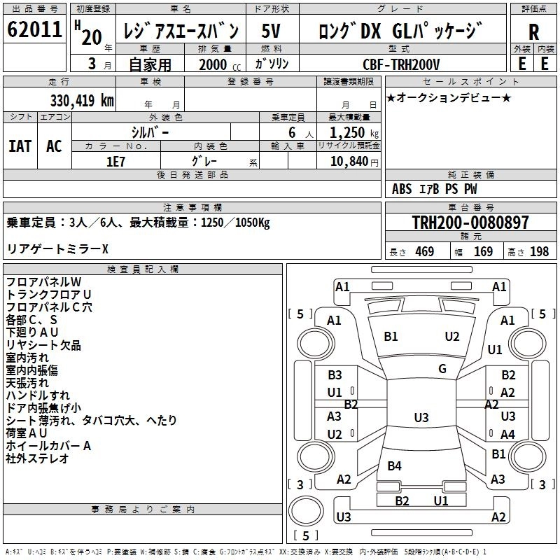 TOYOTA REGIUS VAN 2008 г., лот № 62011