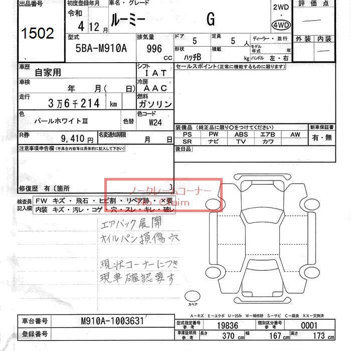 TOYOTA ROOMY 2022 г., лот № 1502