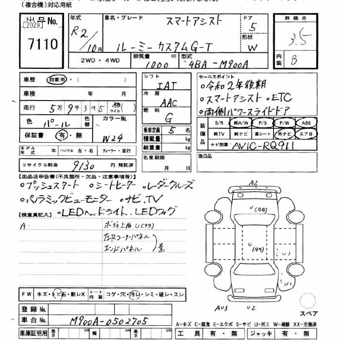 Год выпуска2020 Пробег 59 000 км КузовM900A Комплектация CUSTOM G-T SMART ASSIST