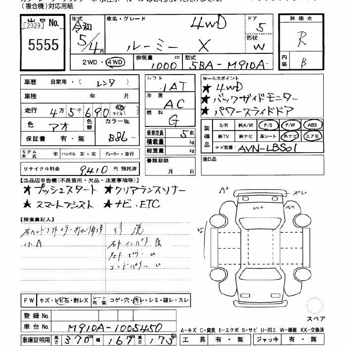 Год выпуска2023 Пробег 45 000 км КузовM910A Комплектация4WD X