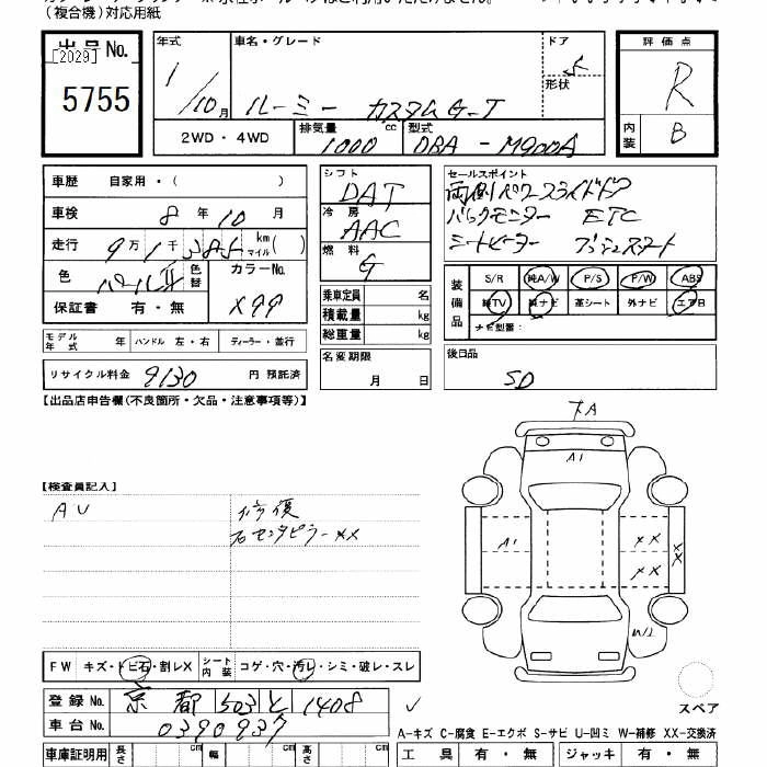 | CUSTOM G | DBA-M910A | 1KR-FE | Full-time 4WD | CVT | 996cc | 69ps(51kW)/6000rpm | AИ-92 | 2 046 000 | |