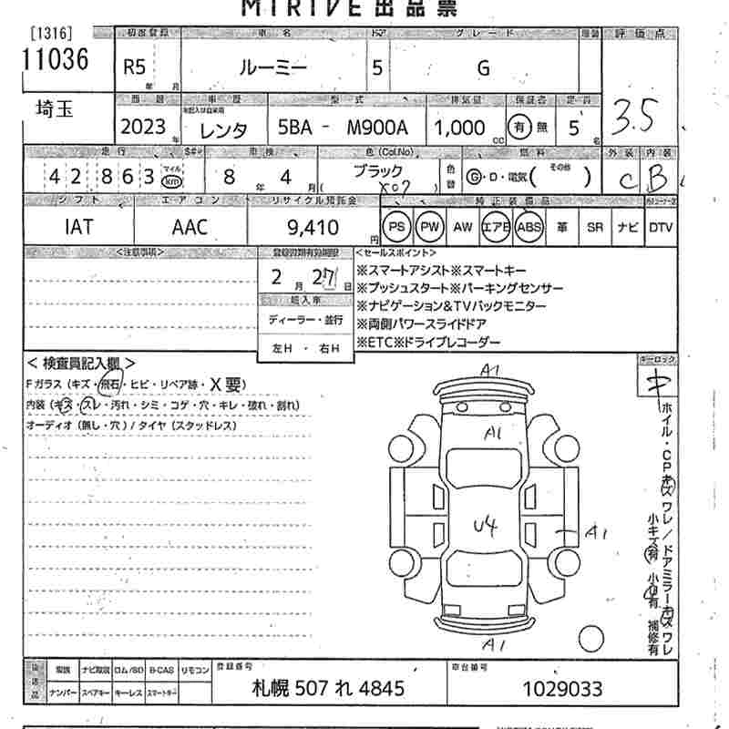 Статус выставлен на аукцион Лот 11036 Аукцион MIRIVE Saitama Дата аукциона 04.02.2026
