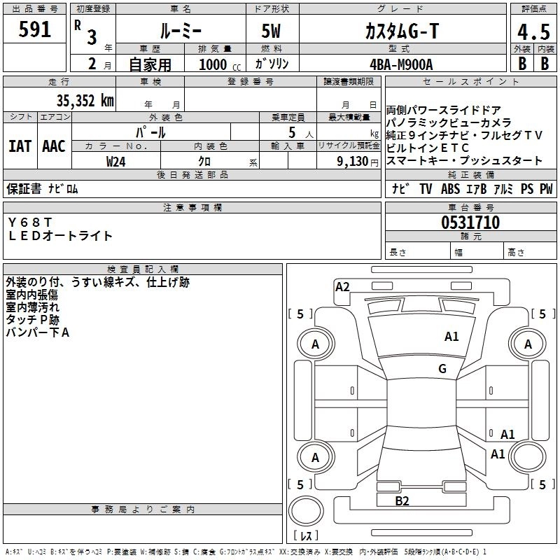 TOYOTA ROOMY 2021 г., лот № 591