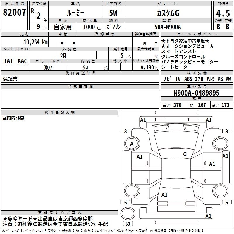 G 5BA-M900A 1KR-FE FF CVT 996cc 69ps(51kW)/6000rpm AИ-92 1 743 500