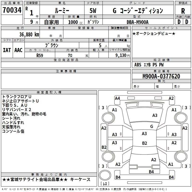 TOYOTA ROOMY 2019 г., лот № 70034