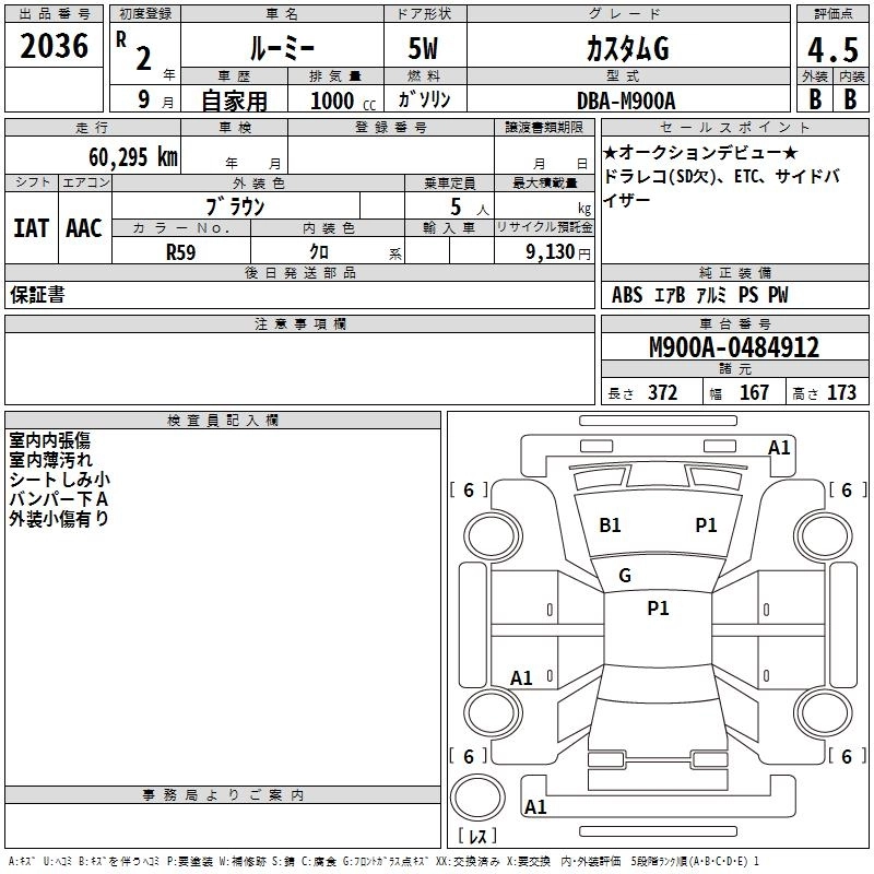 G 5BA-M910A 1KR-FE Full-time 4WD CVT 996cc 69ps(51kW)/6000rpm AИ-92 1 919 500