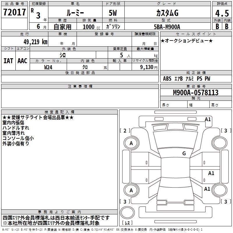 Статус выставлен на аукцион Лот 72017 Аукцион TAA Shikoku Дата аукциона 17.03.2026
