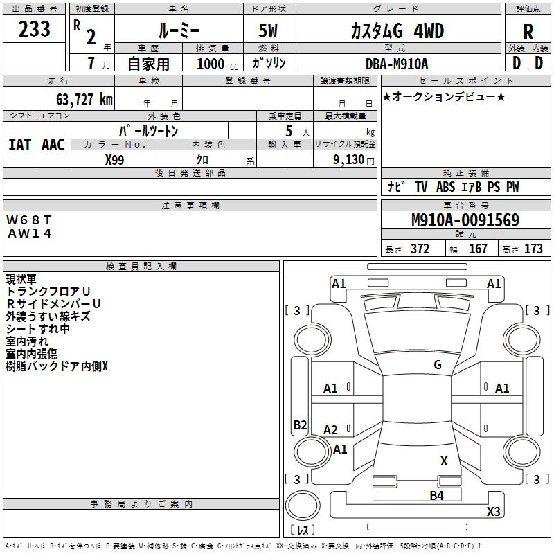 G 5BA-M910A 1KR-FE Full-time 4WD CVT 996cc 69ps(51kW)/6000rpm AИ-92 1 919 500