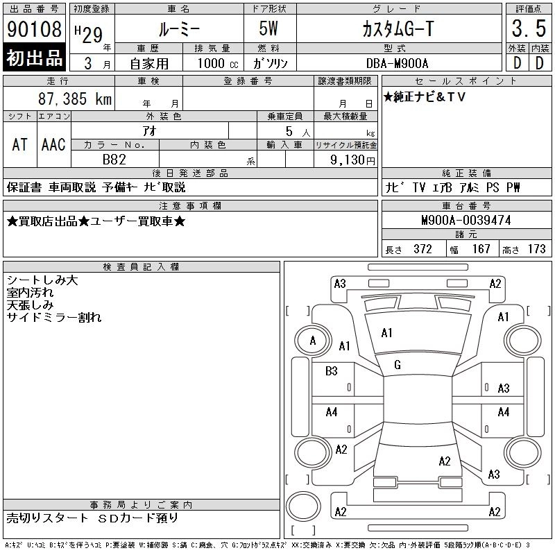 TOYOTA ROOMY 2017 г., лот № 90108