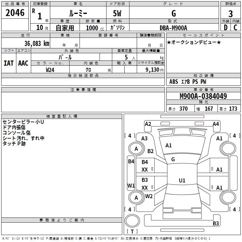 | X S | DBA-M900A | 1KR-FE | FF | CVT | 996cc | 69ps(51kW)/6000rpm | AИ-92 | 1 556 500 | |