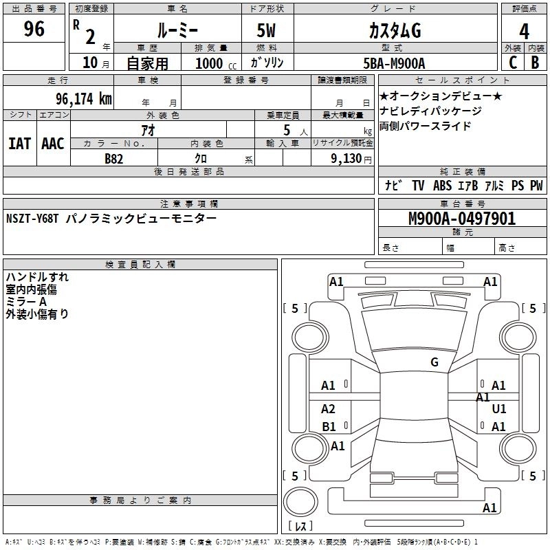 G 5BA-M910A 1KR-FE Full-time 4WD CVT 996cc 69ps(51kW)/6000rpm AИ-92 1 919 500