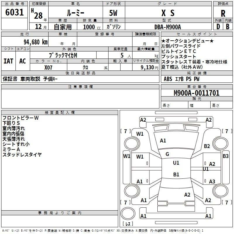 | X S | DBA-M900A | 1KR-FE | FF | CVT | 996cc | 69ps(51kW)/6000rpm | AИ-92 | 1 528 200 | |