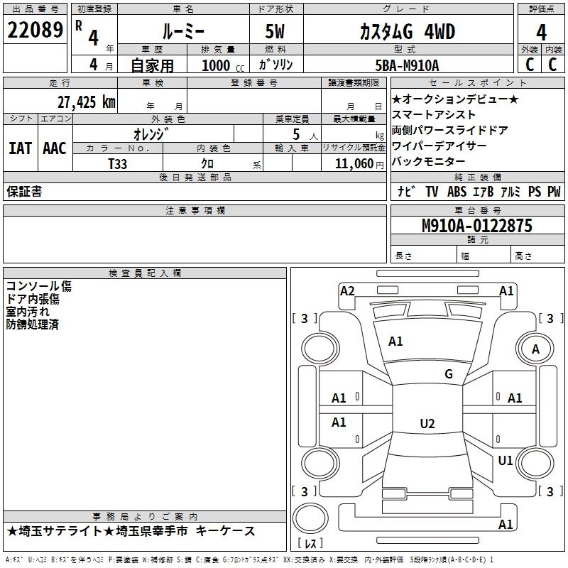 Год выпуска2022 Пробег 27 000 км КузовM910A Комплектация CUSTOM G 4WD