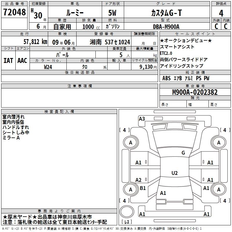| X S | DBA-M900A | 1KR-FE | FF | CVT | 996cc | 69ps(51kW)/6000rpm | AИ-92 | 1 528 200 | |