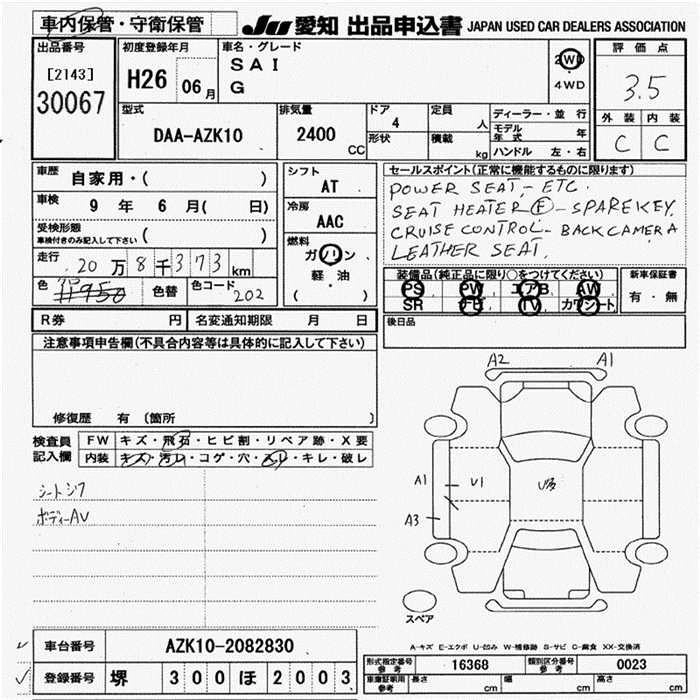 Комплектации для TOYOTA SAI