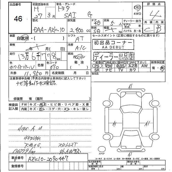 | S C PACKAGE | DAA-AZK10 | 2AZ-FXE | FF | CVT | 2362cc | 150ps(110kW)/6000rpm | AИ-92 | 3 406 909 | |