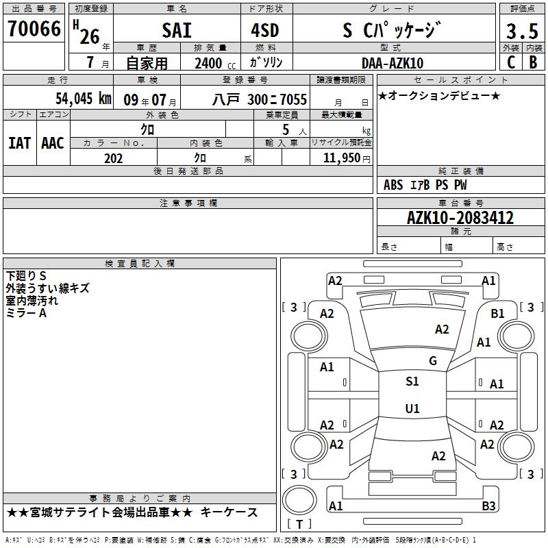 Комплектации для TOYOTA SAI
