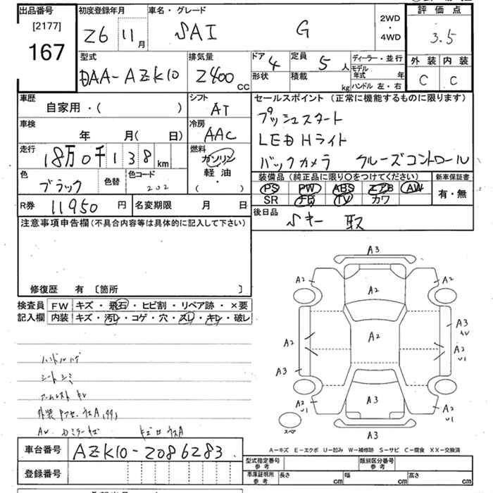 | S C PACKAGE | DAA-AZK10 | 2AZ-FXE | FF | CVT | 2362cc | 150ps(110kW)/6000rpm | AИ-92 | 3 404 571 | |