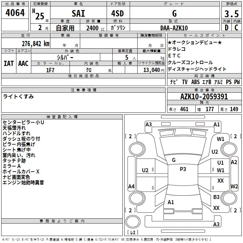 TOYOTA SAI 2013 г., лот № 4064
