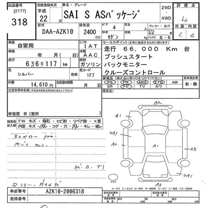 Комплектации для TOYOTA SAI