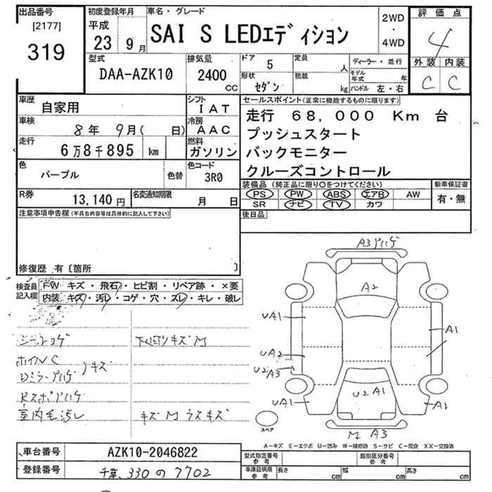 G A PACKAGE DAA-AZK10 2AZ-FXE FF CVT 2362cc 150ps(110kW)/6000rpm AИ-92 4 090 000