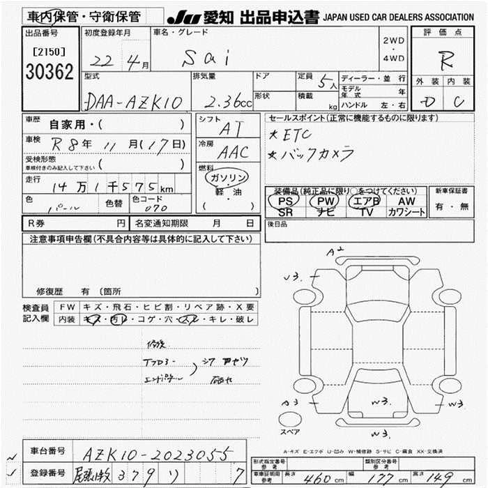 Комплектации для TOYOTA SAI