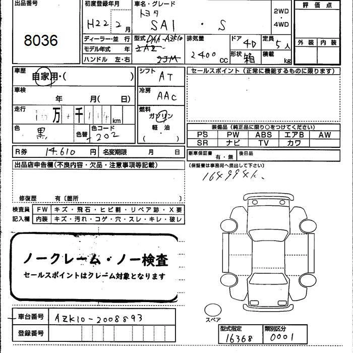 Комплектации для TOYOTA SAI