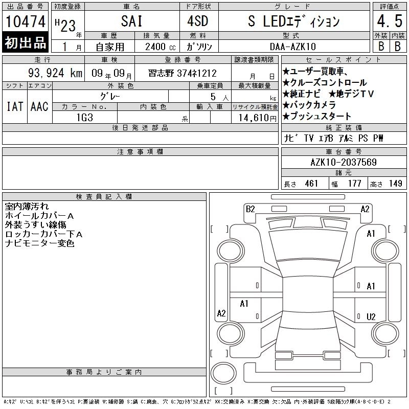 Комплектации для TOYOTA SAI