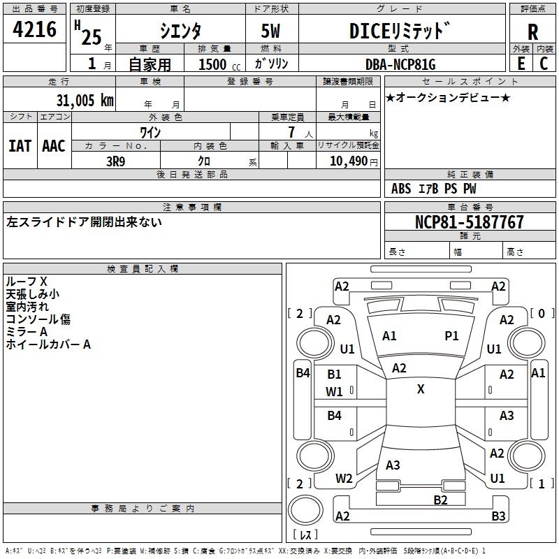 | DICE | DBA-NCP85G | 1NZ-FE | Full-time 4WD | 4AT | 1496cc | 105ps(77kW)/6000rpm | AИ-92 | 1 853 500 | |