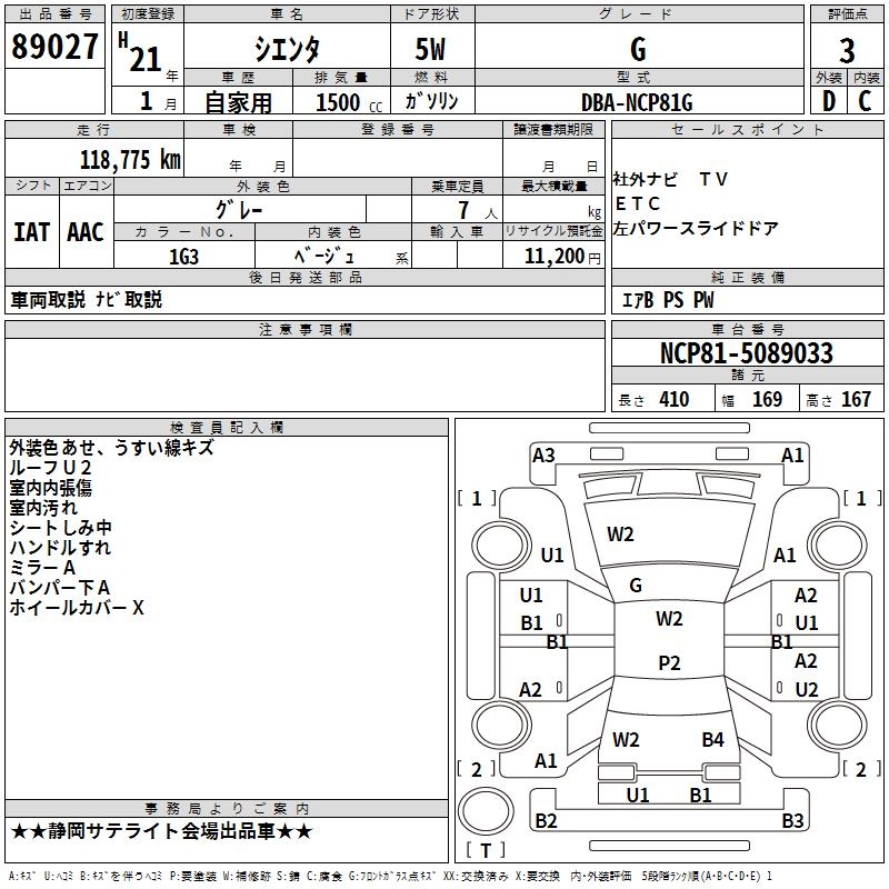 TOYOTA SIENTA 2009 г., лот № 89027