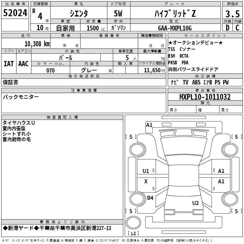TOYOTA SIENTA 2022 г., лот № 52024